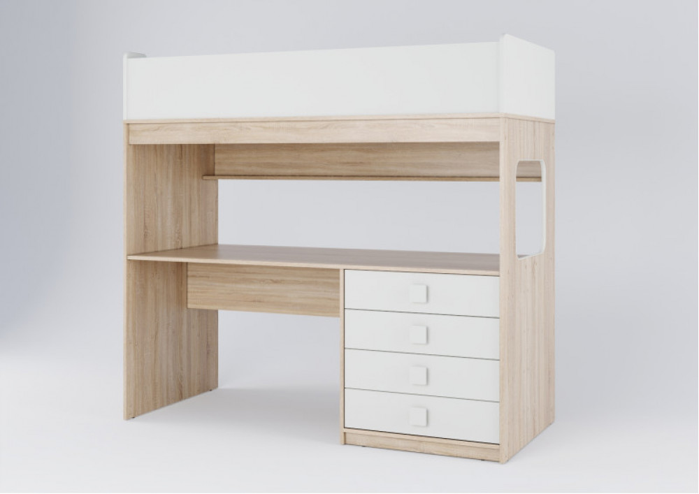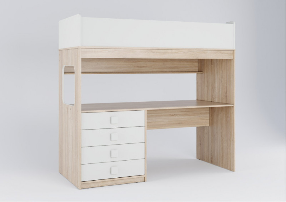 Учебная зона со столом под спальным местом открывает возможности для письменных работ,а также здесь удобно расположить ноутбук.