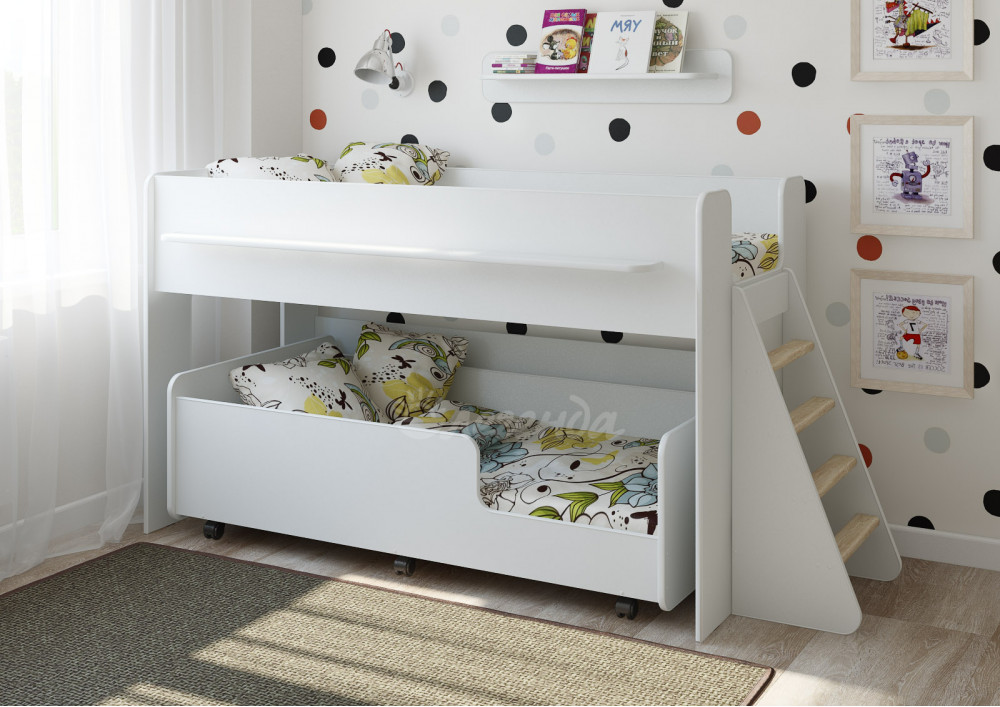 Белый цвет – свежий взгляд на детские выкатные кровати!